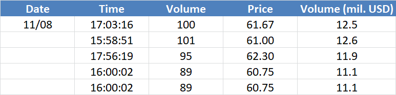 Největší obchody podle objemu na Brent (aktivní future kontrakt)
