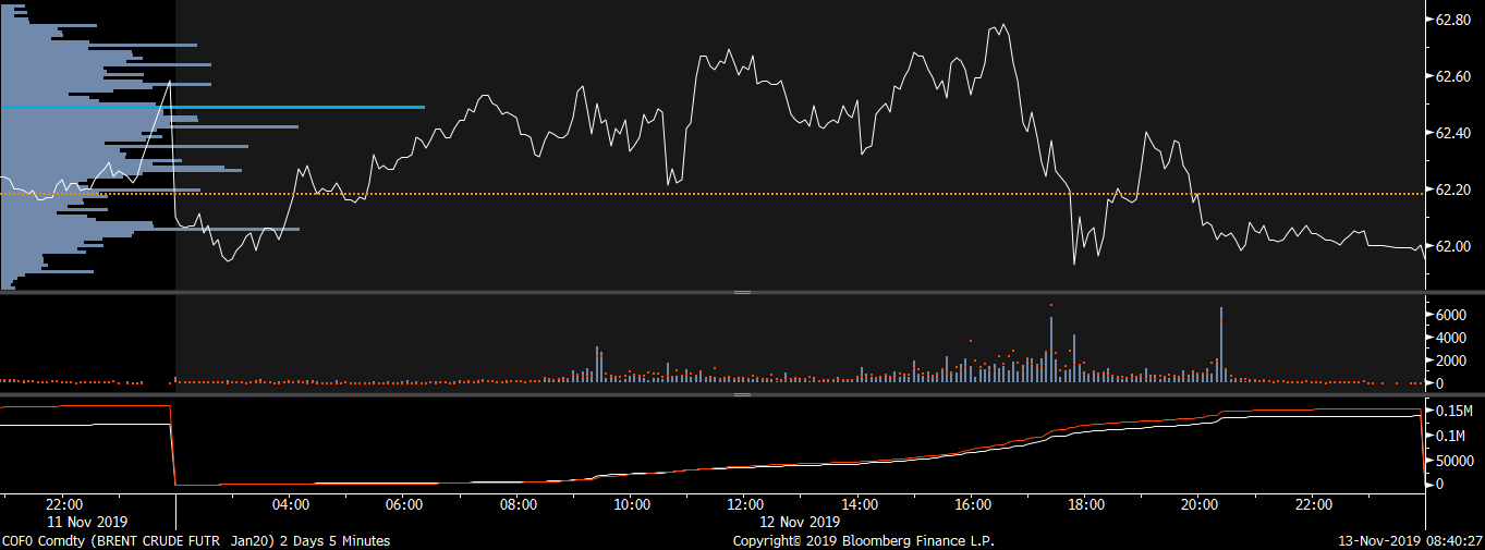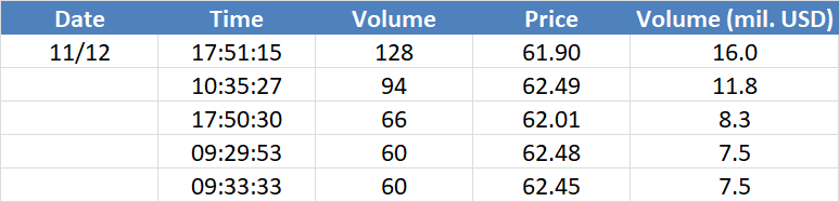 Největší obchody podle objemu na Brent (aktivní future kontrakt)