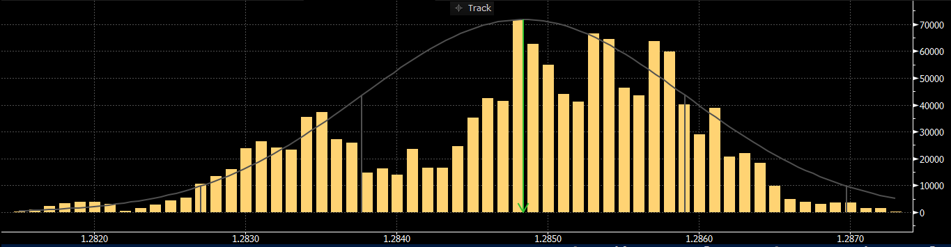 - nejvíce obchodů zrealizováno na ceně 1.2848