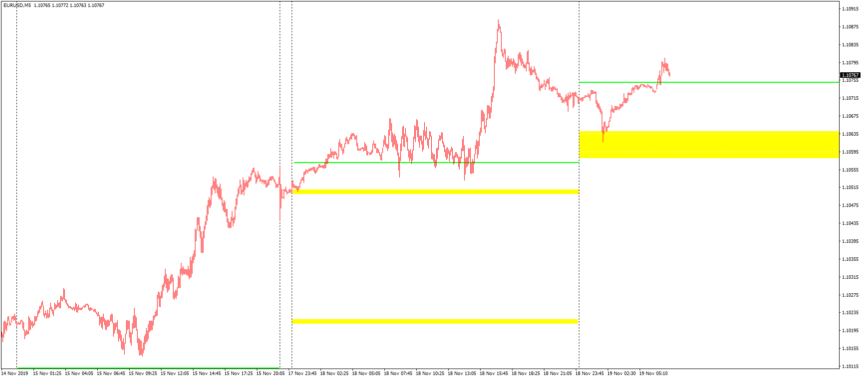 Celkový počet obchodů na jednotlivých cenách během minulé obchodní seance. Úrovně, na kterých se minulou obchodní seanci daný měnový pár nejčastěji zdržoval, mohou působit jako účinný magnet také dnes.
