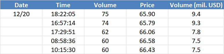 Největší obchody podle objemu na Brent (aktivní future kontrakt)