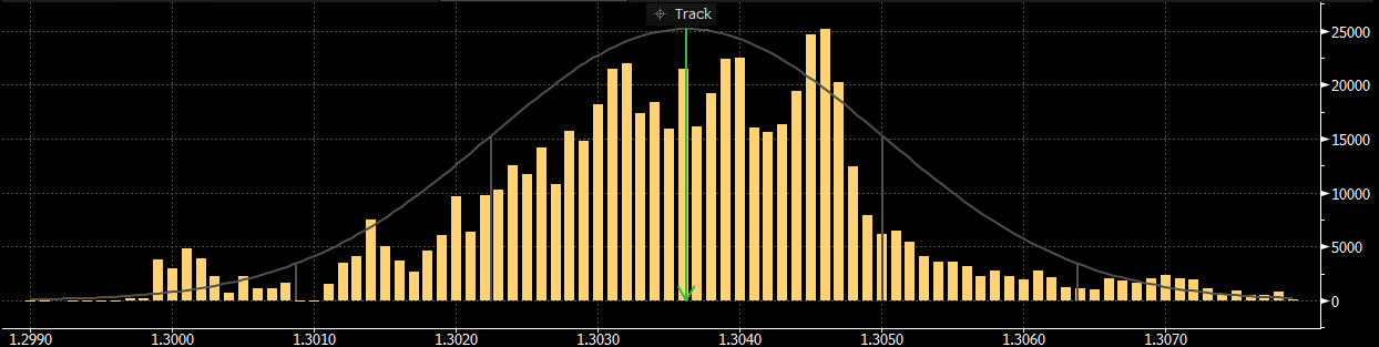 - nejvíce obchodů zrealizováno na ceně 1.3046