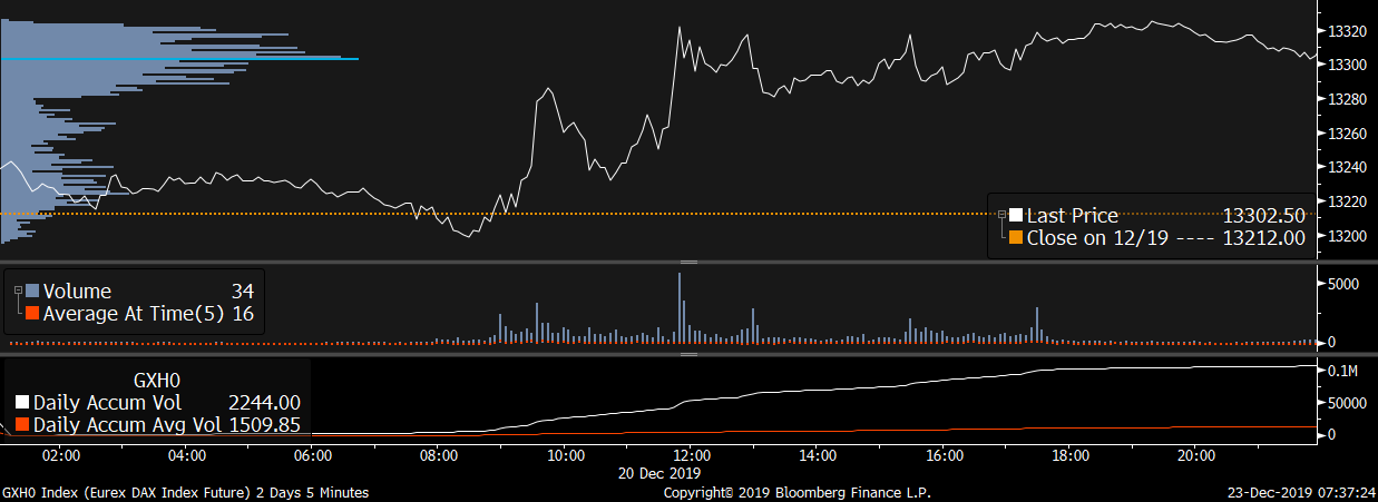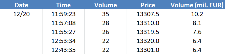 Největší obchody podle objemu na DAX (aktivní future kontrakt)