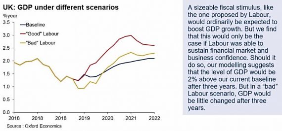 Odhad dopadu navrhovaných labouristických stimulov na rast britského HDP (@OxfordEconomics)