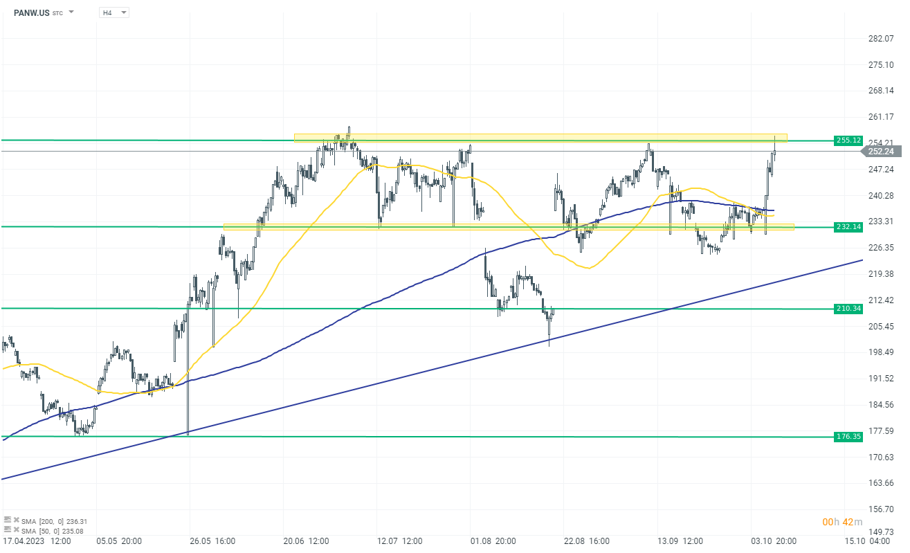 Tváří v tvář eskalaci konfliktu byly postiženy i společnosti zabývající se kybernetickou bezpečností, včetně těch, které jsou kótovány v USA, ale působí v Izraeli. Izrael je koneckonců průkopníkem inovativních řešení v oblasti kybernetické bezpečnosti. BlueStar Israel Technology, ETF, který sdružuje technologické společnosti z Izraele, dnes ztrácí více než 3,0 %, což odráží dopad války na technologické firmy. Mezi potenciálně postižené společnosti patří Palo Alto Networks (PANW.US), která získala několik izraelských společností, například Cider a Cyber Secdo. Přesto společnost na začátku seance zpočátku zaznamenala pouze mírný pokles o 0,3 %. Tyto ztráty byly rychle redukovány a v současné době Palo Alto Networks posiluje o více než 2,0 %. Je pravděpodobné, že kromě rizika začali investoři oceňovat také vyšší šance na rychlý růst trhu v důsledku eskalace geopolitického napětí.