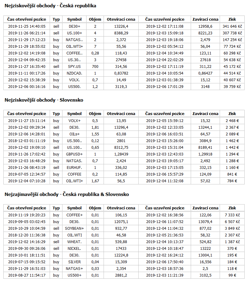 Tabulky: Nejlepší obchody na reálných účtech XTB na uvedených instrumentech