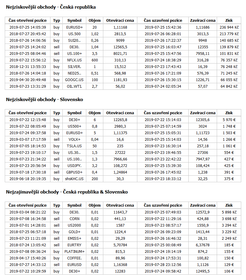 Tabulky: Nejlepší obchody na uvedených isntrumentech