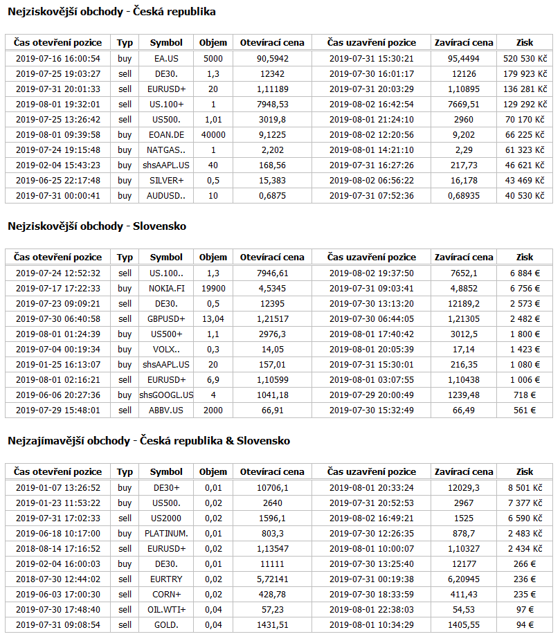 Tabulky: Nejlepší obchody na uvedených instrumentech