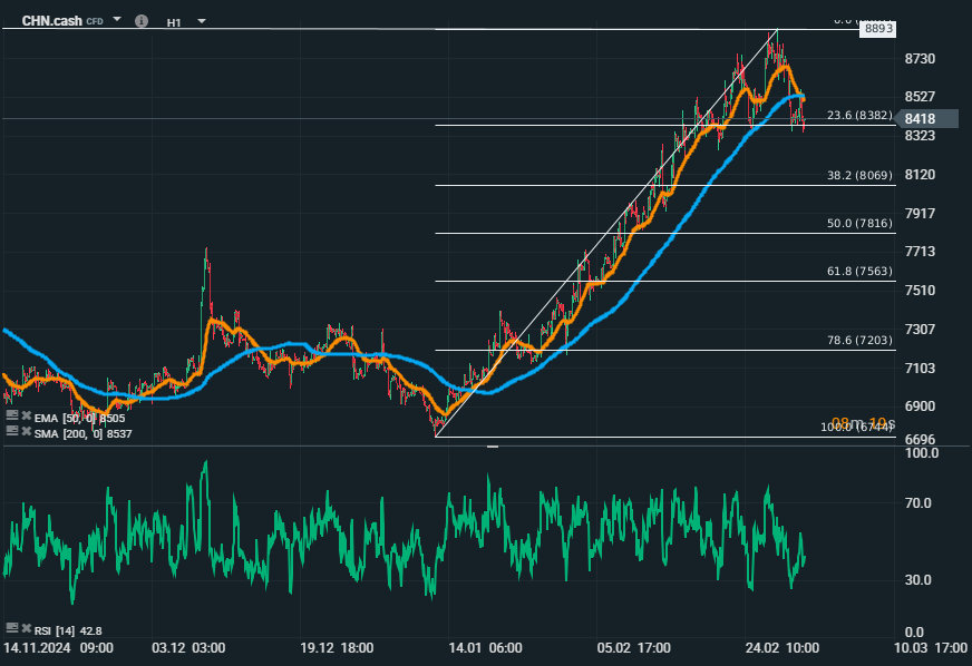 - Aktuálně se cena pohybuje v oblasti 23.6% (8382), což znamená, že trh testuje tuto hladinu jako podporu. Tato hladina byla několikrát již prolomena, ale cena se vždy zatím zotavila nad tuto hladinu v případě, že však dojde k úplnému proražení můžeme očekávat pokles k hladině 38.2% (8069).