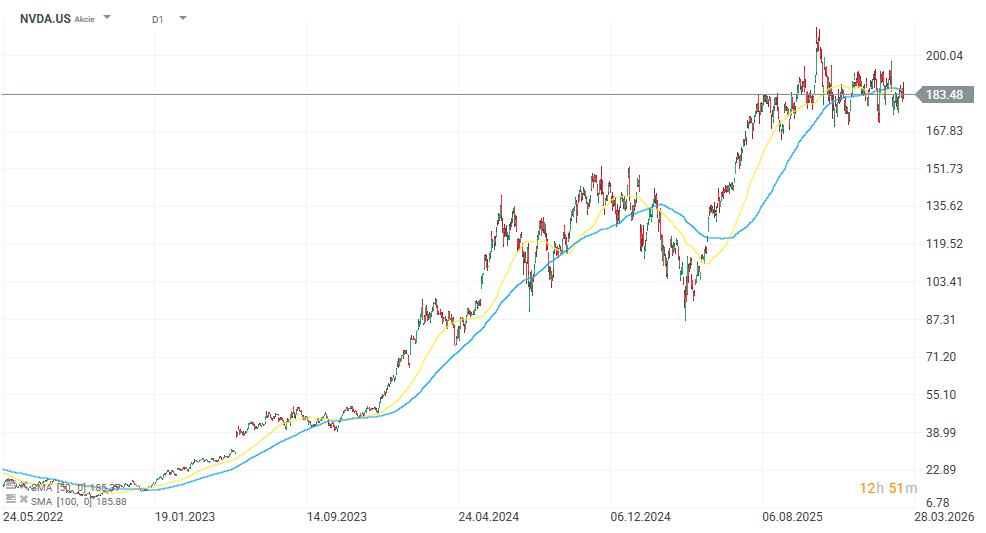 Od začátku roku 2026 akcie NVDA ztrácejí cca 3 %