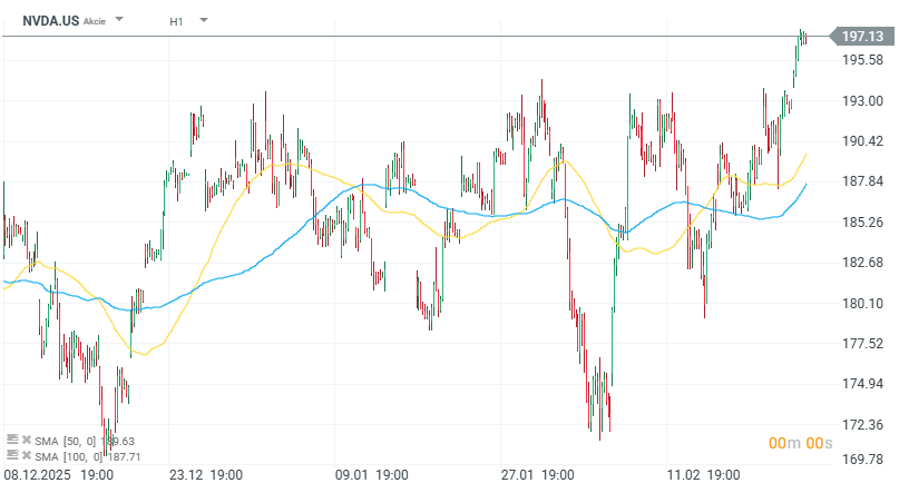 O tom svědčí i bezprostřední reakce trhu. Akcie NVDA po uzavření trhu nejprve rostly o jednotky procent, investoři tak pozitivně reagovali na překonání odhadů i silný výhled. V průběhu večera se však zisky postupně vymazaly a výsledná reakce trhu byla prakticky beze změny, což naznačuje, že část dobrých zpráv již byla do ceny akcií započítána.