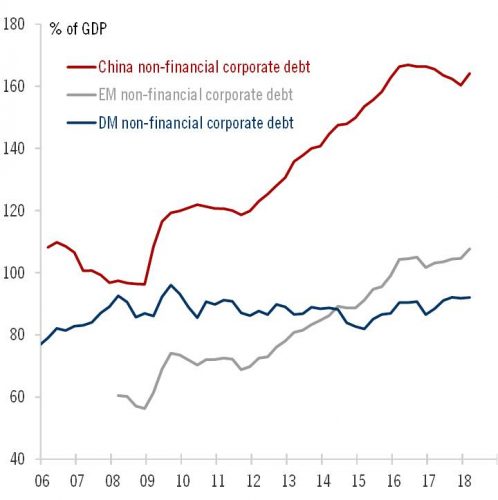 Negatívny dopad obchodných vojen na čínsku korporátnu sféru ilustruje aj návrat firemného dlhu k rastu. V predošlých kvartáloch to vyzeralo, že aktuálne zrejme najväčšia globálna makroekonomická nerovnováha, ktorou je čínsky korporátny dlh, sa postupne zmierňuje. Trumpove obchodné vojny však tento proces vykoľajili a firmy tak potrebujú ďalšie stimuly (@fwred):