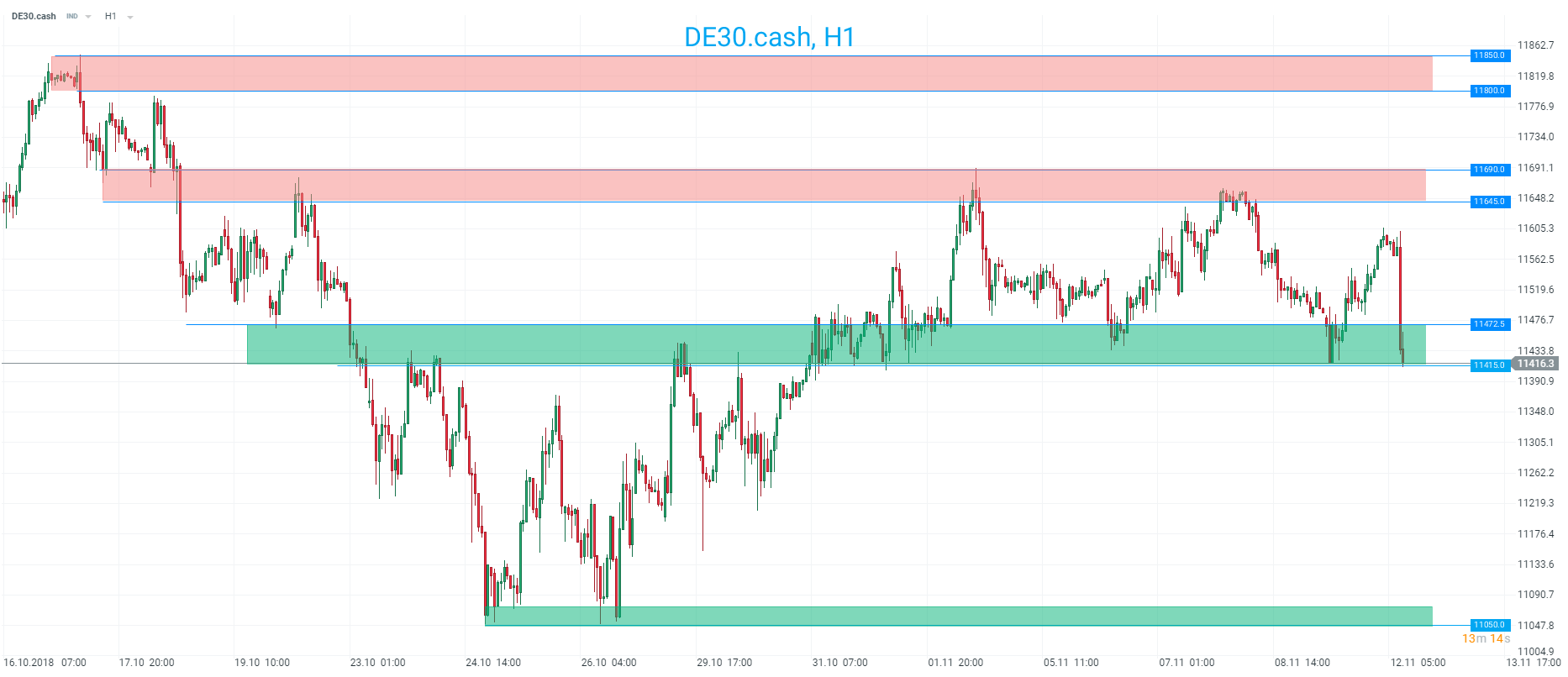 DAX (DE30.cash) testuje support v okolí 11415 bodů