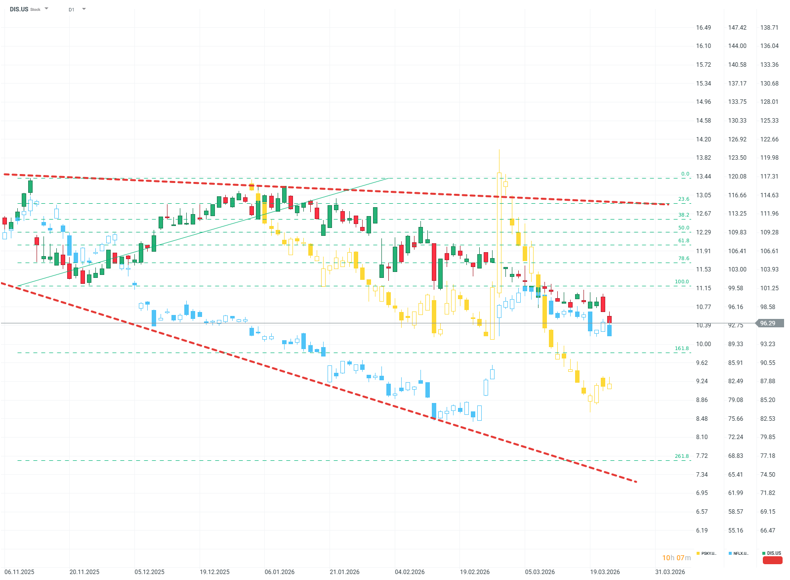 Mediální společnosti čelily výrazným výprodejům kvůli obavám z AI a kvalitě jejich dlouhodobých strategií. Po poklesech z nedávných maxim v dvouciferném pásmu se nyní může otevřít prostor pro návrat k horním hranicím konsolidačního pásma. Zdroj: xStation5.