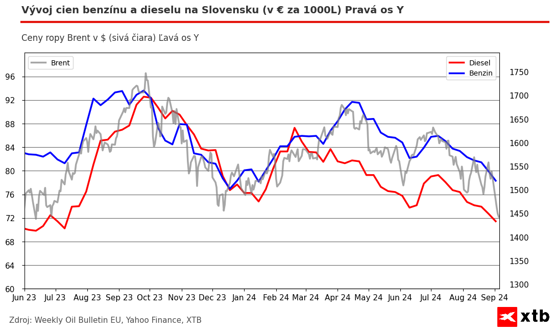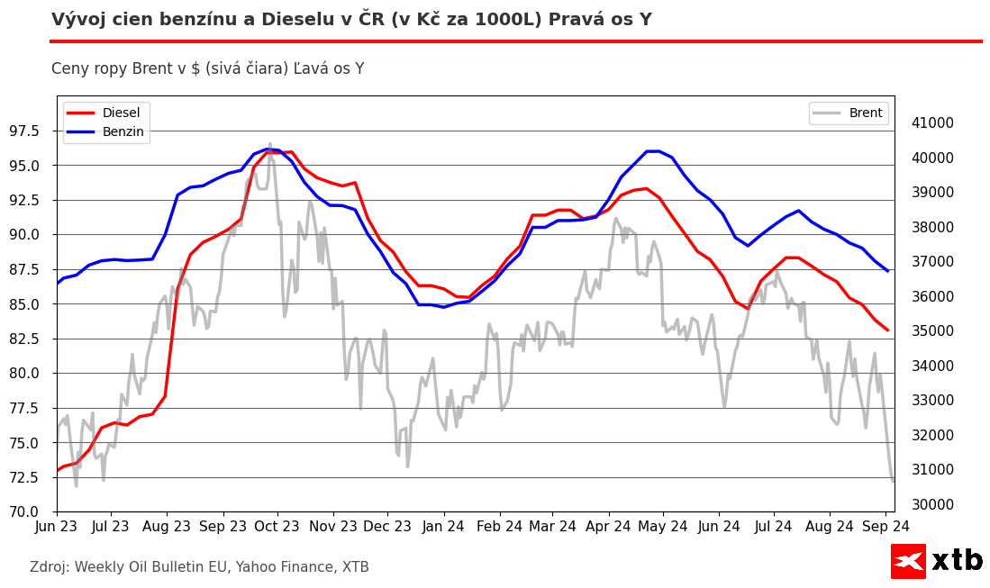 Ceny ropy v týdnu klesly o 2,87 % a dosáhly 78,8 USD za barel ropy Brent. Nyní jsme však svědky jejich výrazného poklesu, v tomto týdnu ceny dokonce klesly na 72,2 USD za barel, tedy o dalších 8,37 %.