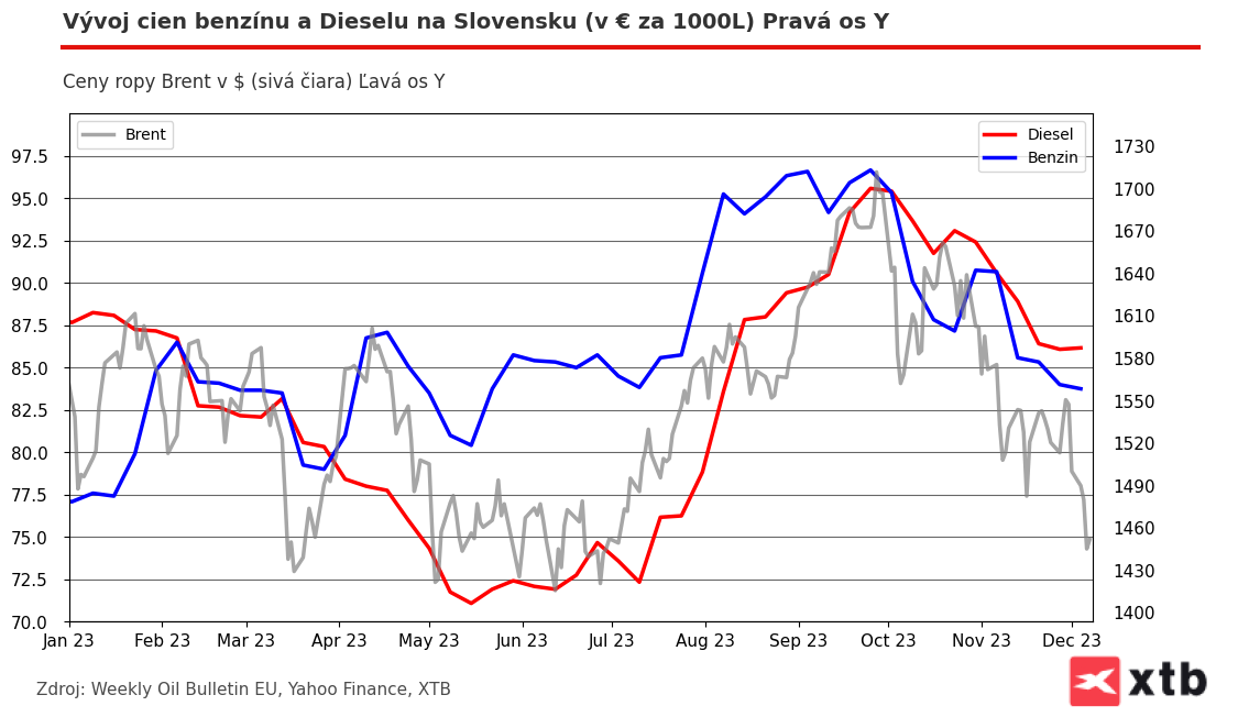 Zdroj: Weekly Oil Bulletin EU, Yahoo Finance, XTB.