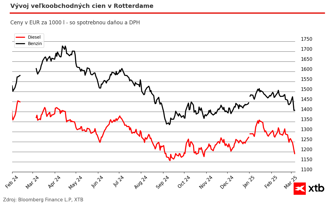 Na velkoobchodním trhu jsme svědky výraznějšího poklesu cen, což naznačuje vysokou pravděpodobnost dalšího zlevňování pohonných hmot u našich pump. Výhled na příští týdny proto zůstává příznivý pro další pokles cen.