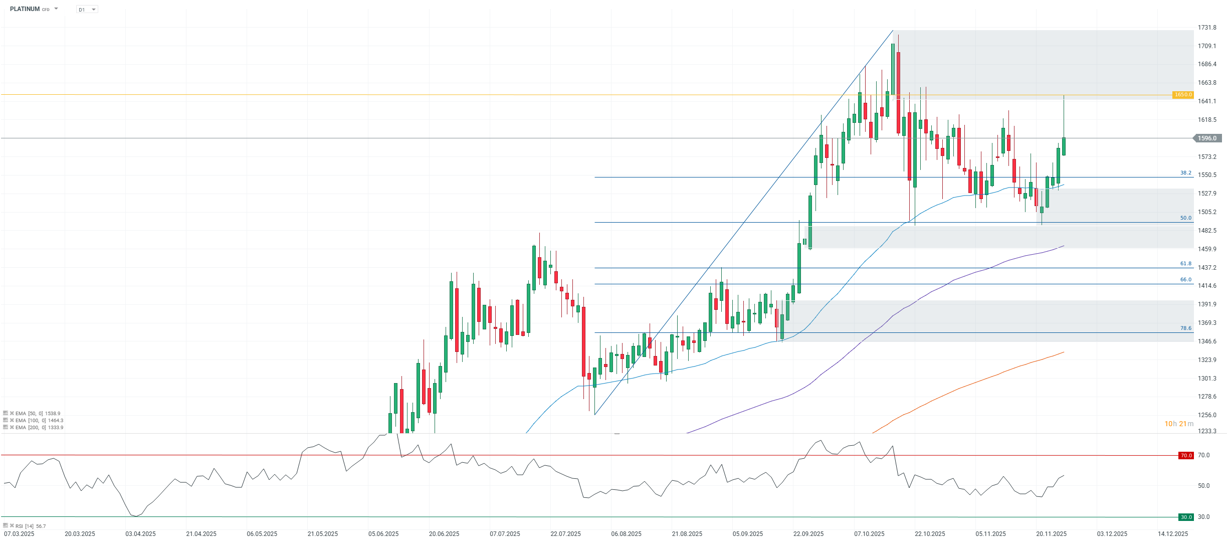 - Platina vyskočila k 1 650 USD za unci po spuštění nového futures kontraktu v Kantonu, který je navázaný na fyzické dodání a otevírá trh širšímu okruhu investorů.