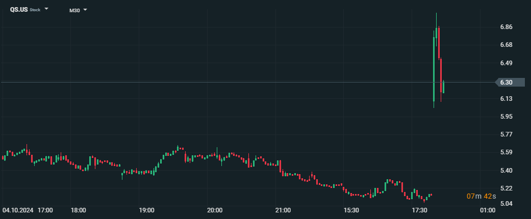 QuantumScape Corp (QS.US) zaznamenal prudký růst akcií poté, co společnost oznámila zahájení výroby svých prvních B-vzorkových bateriových článků a jejich odeslání k testování automobilovým zákazníkům. Tento milník byl označen za nejdůležitější cíl společnosti pro rok 2024. QuantumScape, který je na misi transformovat energetické úložiště pomocí pevné lithium-kovové bateriové technologie, navrhl své baterie nové generace, aby poskytovaly vyšší energetickou hustotu, rychlejší nabíjení a lepší bezpečnost, což podporuje přechod k nízkoemisní budoucnosti.