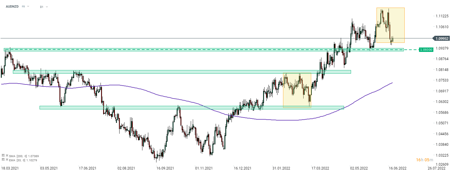 Austrálsky dolár vzrástol po zverejnení RBA minutes, ktoré naznačili potrebu ďalšieho zvyšovania sadzieb. Časť týchto ziskov sa však znížila po prejave guvernéra Loweho, ktorý povedal, že očakávania sadzieb na konci roka na úrovni 4 % sú bohaté. Napriek tomu AUDNZD pokračuje v obchodovaní v raste po úspešnej obrane spodnej hranice lokálnej geometrie trhu. Zdroj: xStation5