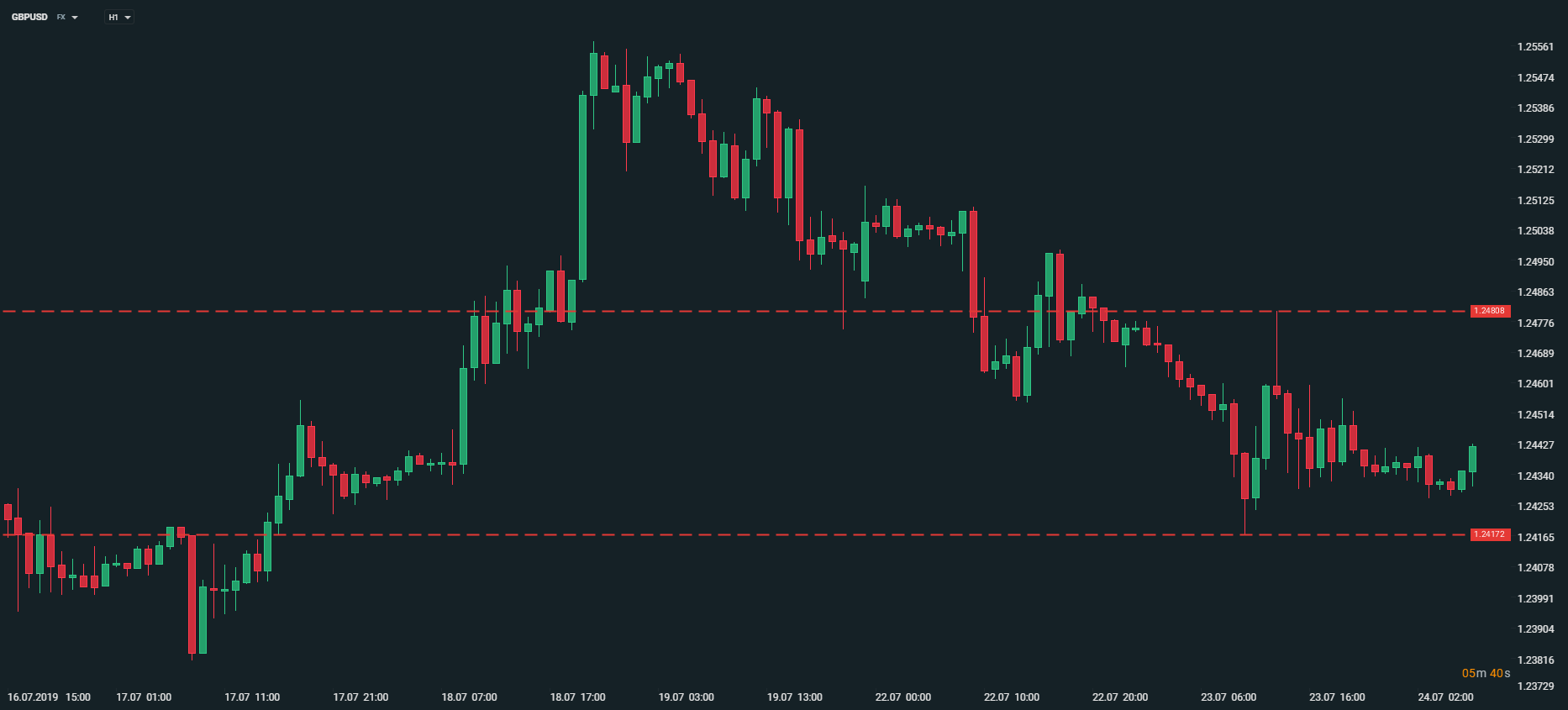Volatilita na libře po zvolení Borise Johnsona novým britským premiérem. Zdroj: xStation5