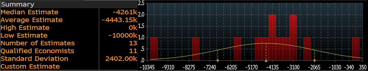 Očekávání na dnešní zásoby ropy DoE v USA. Zdroj: Bloomberg