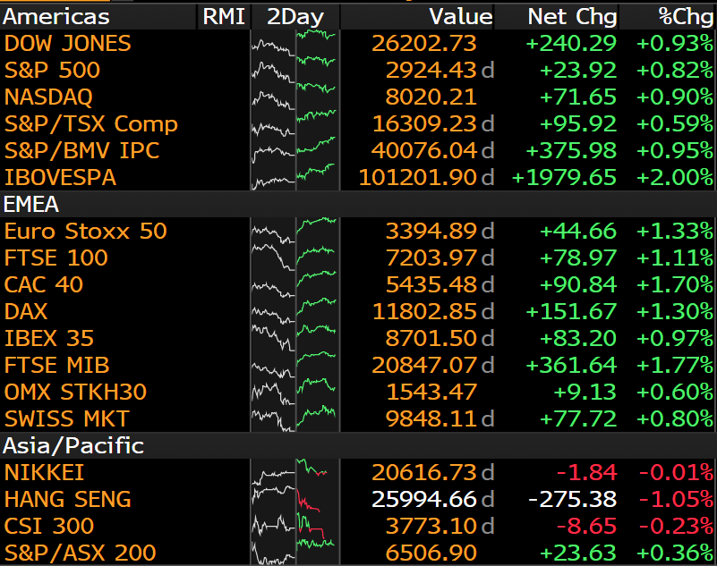 Poslední vývoj hlavních světových indexů. Zdroj: Bloomberg