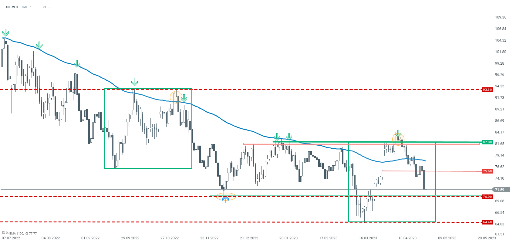 Ropa včera zaznamenala výrazný pokles. Kotace OIL.WTI jsou na cestě k testování podpory na úrovni 70 USD. Zdroj: xStation5