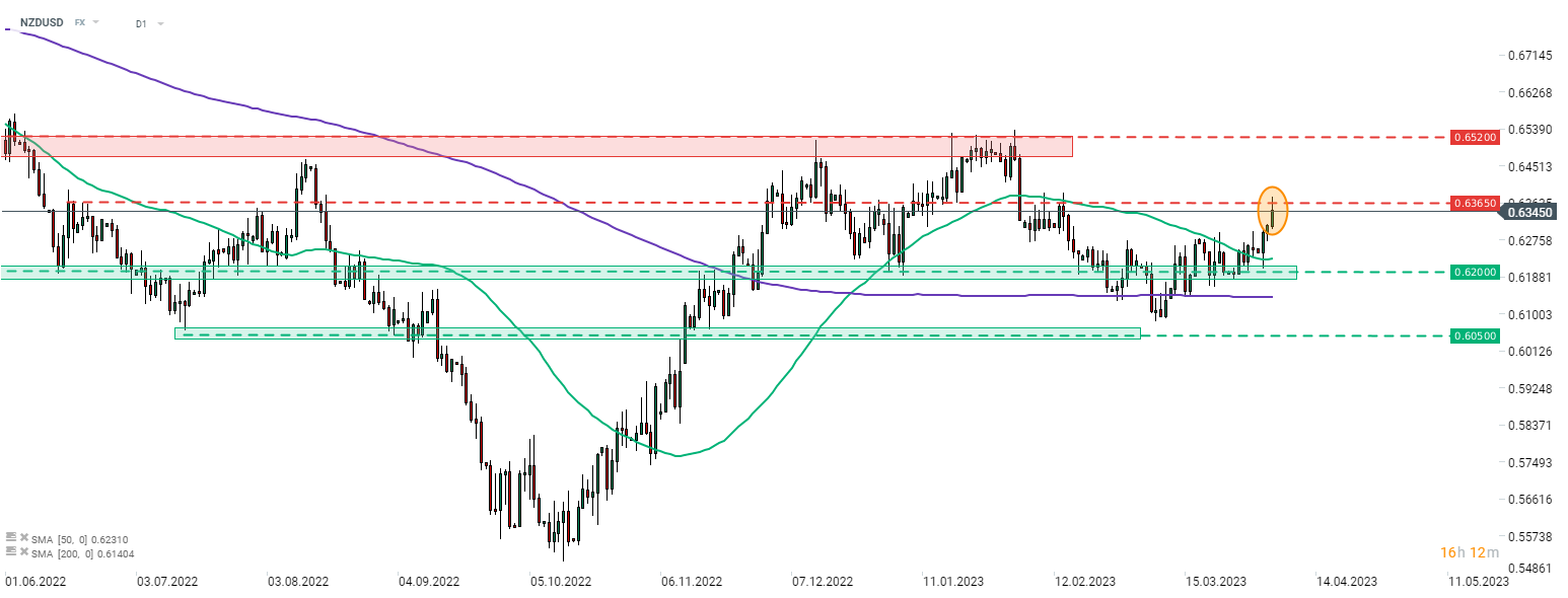 NZDUSD vyskočil a otestoval oblast 0,6365 po větším než očekávaném zvýšení sazeb RBNZ. Zdroj: xStation5