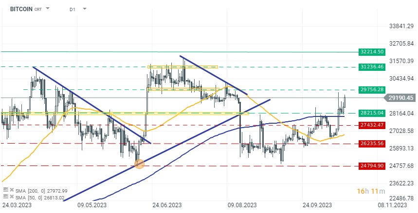 Kryptoměny zůstávají silné tváří v tvář rostoucí nejistotě na tradičních globálních trzích. Bitcoin posiluje a obchoduje se již nad hranicí 29 000 dolarů.