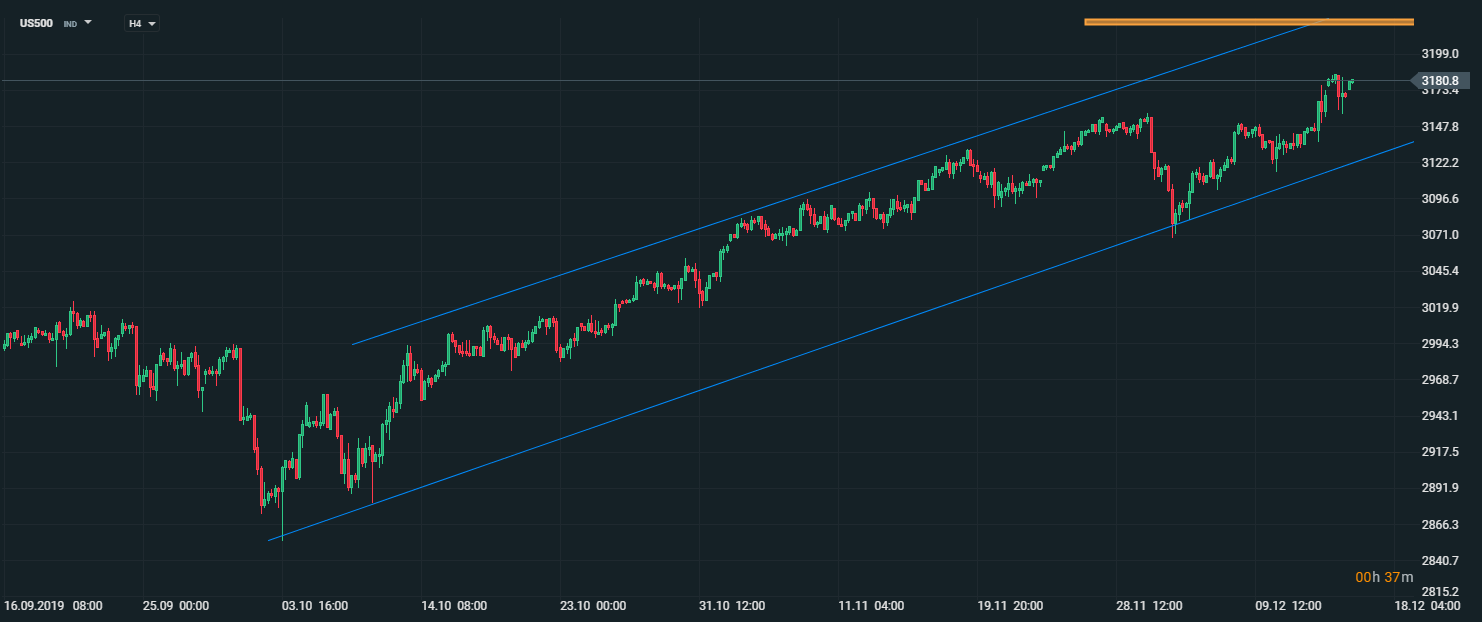 Americký akciový index US500 sa obchoduje v blízkosti historických maxím na úrovni 3180 bodov. V prípade, ak cena dokáže prekonať vyššie uvedené maximá, otvorí sa priestor pre rast k úrovni 3200 bodov. Zdroj: xStation5