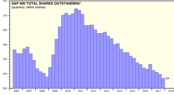 Počet akcií na trhu tak zrejme klesne na nové minimum v tomto tisícročí. V štvrtom kvartáli bol počet akcií len o chlp vyšší ako pred krízou, počas ktorej firmy vo veľkom vydávali nové akcie, aby kryli svoje straty.