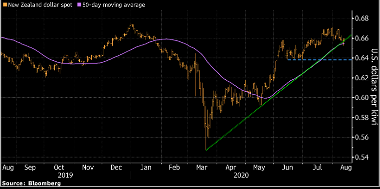 Menový pár NZDUSD má nakročené k testovaniu supportu na úrovni 0,64. RBNZ na včerajšom zasadaní naznačila, že by chcela oslabiť menu. RBNZ sa pripravuje na zavedenie negatívnych úrokových sadzieb, na čo novozélandský dolár reagoval poklesom. Menový pár v súčasnosti testuje 50-dňový kĺzavý priemer. V prípade, ak pár dokáže prekonať spomínanú úroveň supportu, otvorí sa priestor pre výraznejší pokles k hladine 0,64. V prípade, ak novozélandské výnosy na dlhopisoch zaznamenajú pokles, oslabovanie novozélandského dolára sa môže zrýchliť.