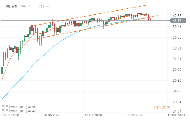 OIL i OIL.WTI klesají o téměř 1 % po výrazném středečním výprodeji, který přišel i přes pokračující zisky na akciových trzích. OIL.WTI se dokonce pokusil o proražení rostoucího trendového kanálu. Z technického pohledu by platný průraz mohl přinést výraznější korekci.