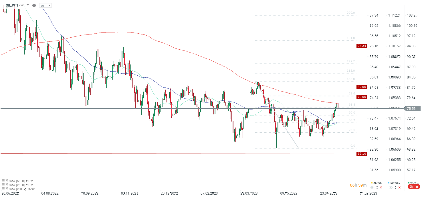 Z technického hlediska samozřejmě reagujeme na důležitou rezistenci. Nejbližší poptávkové pásmo ropy se nachází kolem 72,5 až 73,5 USD za barel. Pro potvrzení naší teze o vybírání zisků však stojí za to věnovat pozornost poklesu zlata nebo také smíšené náladě na Wall Street.