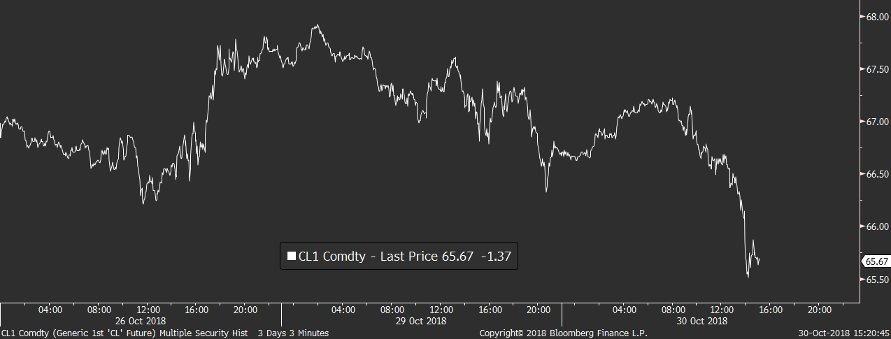 Na komoditním trhu stojí za pozornost hlavně situace na ropě, která dnes v případě americké WTI ztrácí další dvě procenta a klesá až pod 66 USD za barel. Žádného nového ropného fundamentu jsme se přitom nedočkali a ropa dál doplácí hlavně na obavy ze zpomalení světové ekonomiky.