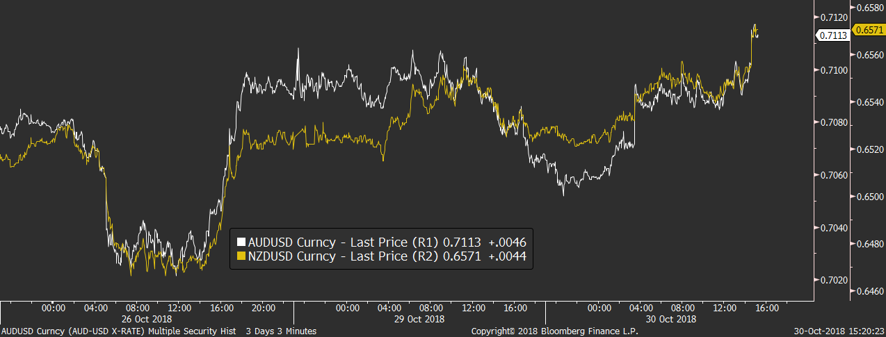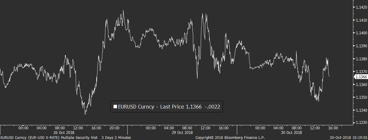 Na devizovém trhu ani dnes nejsme svědky výraznějších pohybů a většina měnových párů si své pozice drží. Říjnový výplach na indexech tak jakoby se měn ani nadále příliš netýkal. Silná zůstává hlavně americká měna, které pomáhá vidina dalšího utahování měnové politiky, které by mělo být i nadále rychlejší než v ostatních zemích. Na páru s eurem tak dolar zůstává pod 1,14 EURUSD.