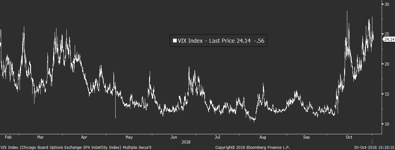 Klíčovým faktorem je úroveň rizikových přirážek, která zůstává zvýšená a zatím neklesá. VIX index se drží nad hranici 24b., což důvěře ve znovuoživení býčího trendu zatím příliš nepomáhá.