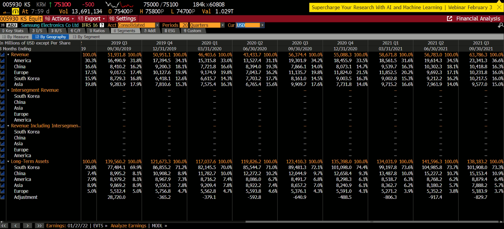 SE mnohí z nás poznajú primárne ako výrobcu spotrebnej elektroniky, televízorov a mobilov. Z hľadiska vyrobeného objemu ide od roku 2007 o najväčšieho výrobcu smartfónov na svete a od 2006 o najväčšieho výrobcu televízorov. Pre firmu sú však tieto segmenty dôležité viac z hľadiska PR a viditeľnosti značky, ako z hľadiska tržieb a ziskov. Poďme sa teda na jednotlivé segmenty a ich prínos pre firmu pozrieť bližšie, čísla si budeme uvádzať za 3Q2021, takže sledujte posledný stĺpec, konkrétne riadok Revenue (tržby) a Operating Income (zisk).
