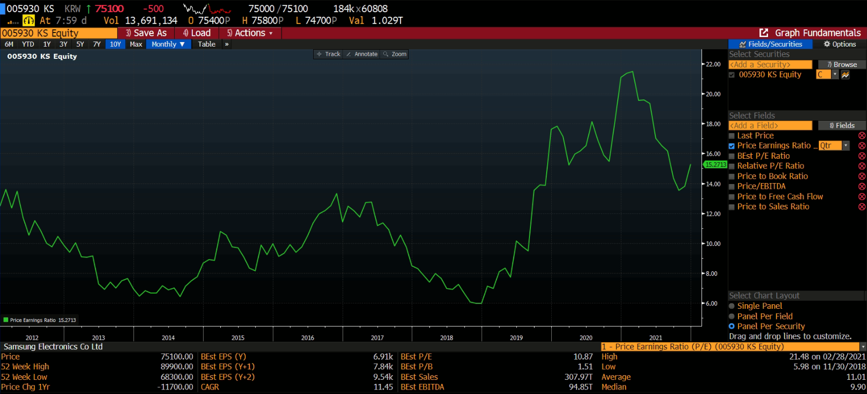Pri výbere akcií sa často stretávame s tým, že sa investori zameriavajú najmä na USA. Menšia skupina z nich do portfólia pridáva aj európske akcie, posledný rok si obľubu získavajú aj napríklad čínske firmy, ostatné krajiny však ostávajú v úzadí. Na jednej strane to je pochopiteľné, keďže americké firmy pozná každý, tento trh je známy svojou dlhodobo stabilnou výkonnosťou, silným rastom posledných rokov, najzvučnejšie mená firiem pozná každý a sú veľmi dobre a lacno dostupné. Na strane druhej je možno škoda, že investori prehliadajú iné trhy, na ktorých sa dajú často nájsť zaujímavo ocenené tituly. Firmu, ktorú si dnes predstavíme pozná snáď každý a s vysokou pravdepodobnosťou od nej má väčšina z nás minimálne jeden výrobok, alebo nejaký komponent doma, avšak z investičného hľadiska asi napadne len málokomu. Ide o juhokórejskú technologickú firmu, ktorá je svojim ocenením a možno aj súčasnou rizikovosťou niekde medzi drahšími, ale stabilnými americkými techmi, a lacnými a problémovými čínskymi akciami. Reč bude o spoločnosti Samsung Electronics.