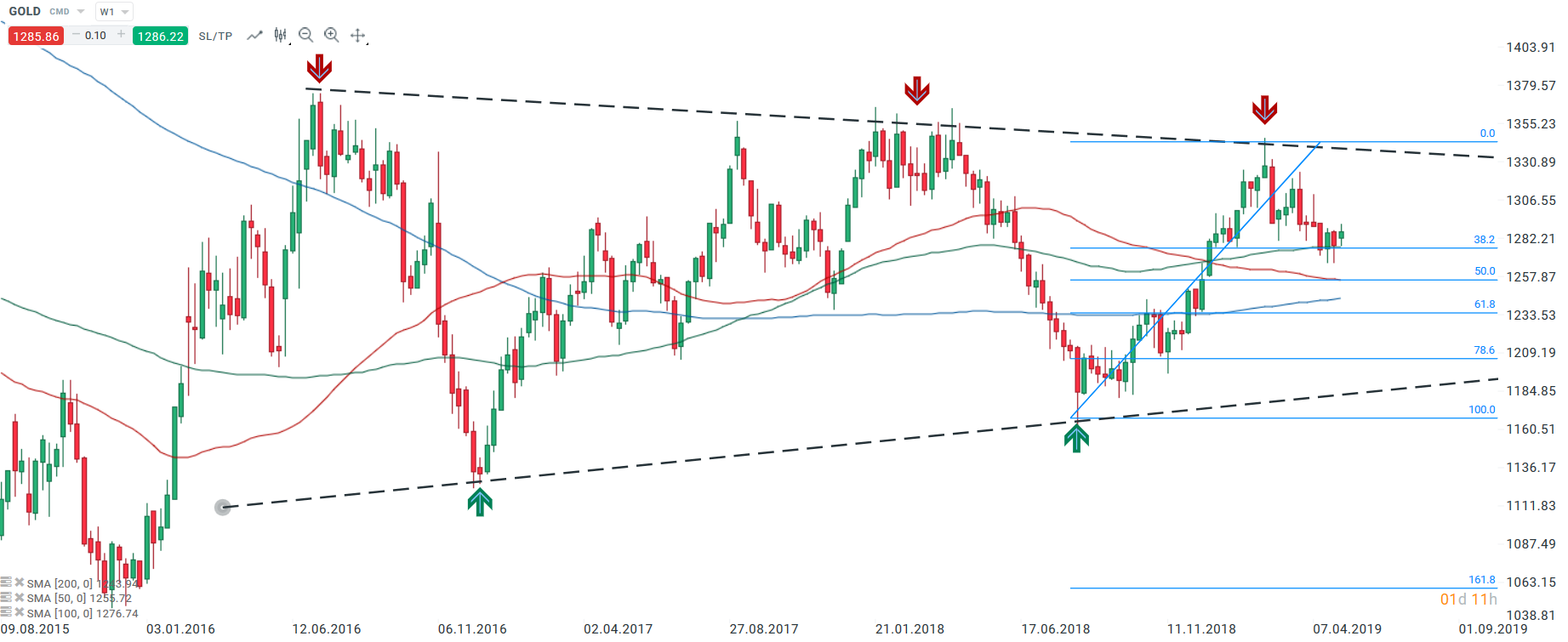 - Zlato (GOLD) sa obchoduje v rámci trojuholníkovej formácie