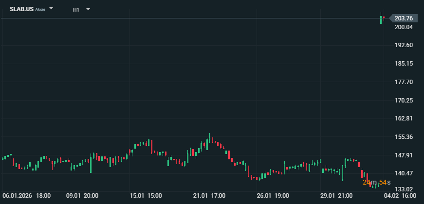 Po oznámení obchodu akcie Silicon Labs prudce vzrostly o více než 50 % v předobchodní fázi, zatímco akcie TI mírně klesly. Transakce by měla být dokončena v první polovině roku 2027, závisí však na schválení regulačních orgánů a akcionářů. Zdroj: xStation5