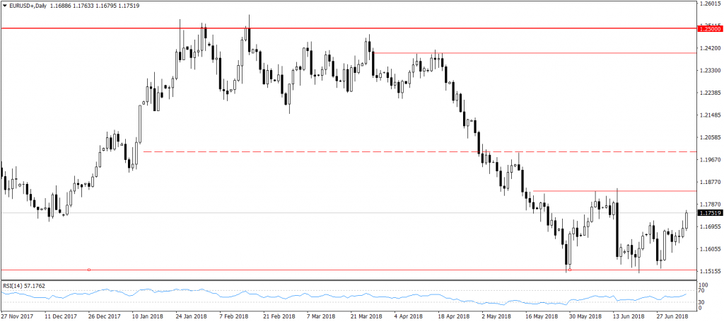 Tým číslo, ktoré stiahlo nadol dolár, boli mzdy. Medziročne je však ich rast na úrovni 2,7% stále dosť vysoký na to, aby FED zvyšoval sadzby. Také zlé teda čísla neboli. Po viacnásobnom neprekonaní supportu pri úrovni 1,152 však aktuálne nie je ochota predávať EURUSD veľká a tak kombinácia lepších dát z eurozóny a pomalšieho rastu miezd poslala EURUSD nahor. Aktuálne je najvyššie od zasadnutia ECB 14.6, ktoré sklamalo eurových býkov. Dnešné čísla však neboli takého charakteru, ktorý by mal vyvolať na páre dlhší trend.