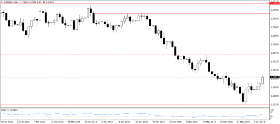 Toto roztrhnutie vreca s jastrabími vyhláseniami zrejme nebude náhoda. ECB posmelená relatívne silnou infláciou z konca minulého týždňa (jadrová poskočila z 0,7% na 1,1%) zrejme uvažuje nad ohlásením ukončenia QE, resp. nad jastrabím vyhlásením na zasadnutí budúci týždeň a pripravuje na to trhy. EURUSD vďaka tomu rastie a atakuje úroveň 1,18.
