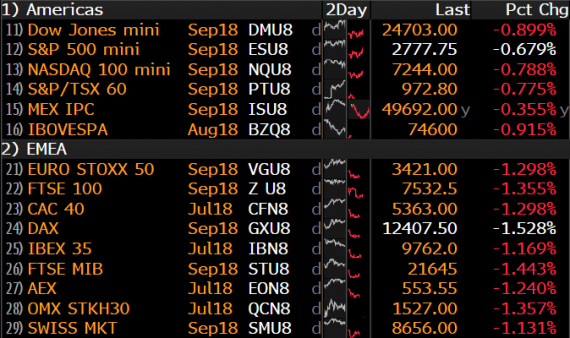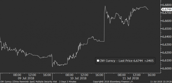 Téma středeční seance se na finančních trzích zdá být už od brzkých ranních hodin zcela jasné. Je jím hrozba dalších cel na čínské dovozy v objemu až 200 mld. dolarů, které by na Čínu mohly Spojené státy uvalit už koncem příštího měsíce. Trh se zároveň děsí toho, jakým způsobem by na tato cla případně odpověděla Čína, jak by na její odpověď odpověděly USA atd. atp. I dnešek tedy dokazuje, že téma obchodní války z trhů rozhodně nemizí, i když nutno dodat, že trhy stále zůstávají v relativním klidu, když implikovaná volatilita na S&P500 roste pouze na 13,5b. a futures na indexy v USA ztrácejí sotva procento. Trhy jsou tedy v nervózním, ale stále kontrolovaně nervózním, režimu.