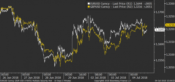 Z makra dnešek přinesl pouze výsledky evropského PMI pro sektor služeb. Čerstvá (červnová) data zveřejnila Itálie, Španělsko a Británie a nová čísla příjemně překvapila hlavně v Británii a v Itálii. Španělský PMI sice mírně postřelil většinový konsenzus, výsledky ve všech třech zemích jsou ale dál výrazně nad hranicí expanze sektoru. Nová data jsou tak i nadále v souladu s lepšícími se výsledky, které v poslední době z Evropy přicházejí. I červnová data tedy potvrzují, že je ekonomické zpomalení z 1Q v Evropě prozatím u konce.