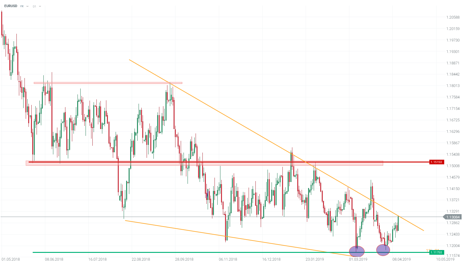 EURUSD testuje dvojité dno. Zdroj: xStation5