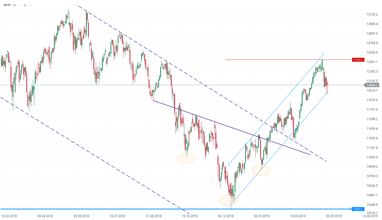 Pullback ale zatím žádný kolaps. DE30 zůstává v růstovém trendu. Zdroj: xStation5