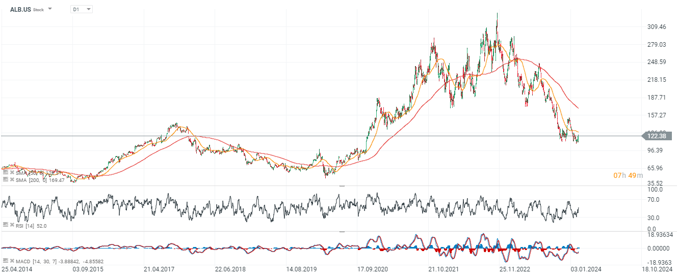 Albemarle (ALB.US) získává více než 7 %, ačkoli výrobce lithia poskytl vodítko, které Wall Street poněkud zklamalo. Společnost vykázala ve 4. čtvrtletí druhý největší zisk za celý rok 2023, což investoři brali jako potenciální signál kvality řízení a celkového výhledu podnikání.
