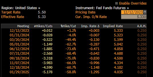 Bez ohledu na to, co ukazuje dnešní zpráva CPI, je nepravděpodobné, že by to mělo zítra dopad na rozhodnutí FOMC o sazbě. Američtí centrální bankéři by měli na zasedání tento týden ponechat sazby beze změny. Nicméně nižší než očekávané hodnoty CPI by mohly podpořit holubičí sázky na trzích, přičemž ceny za první snížení sazeb by se mohly posunout vpřed. V současné době trhy plně cení na prvním snížení sazeb na zasedání v květnu 2024, ale ceny na březnové zasedání ukazují přibližně 50% šanci na snížení sazby o 25 základních bodů. Pokud budou peněžní trhy více holubičí, cenové sazby budou klesat rychleji než nyní, mohlo by to poskytnout podporu pro riziková aktiva, jako jsou akcie, a zároveň vytvořit tlak na USD. Obchodníci by si měli pamatovat, že dopad dnešního CPI na trh bude pravděpodobně krátkodobý, protože pozornost trhů se pravděpodobně rychle poté přesune k zítřejšímu rozhodnutí FOMC.